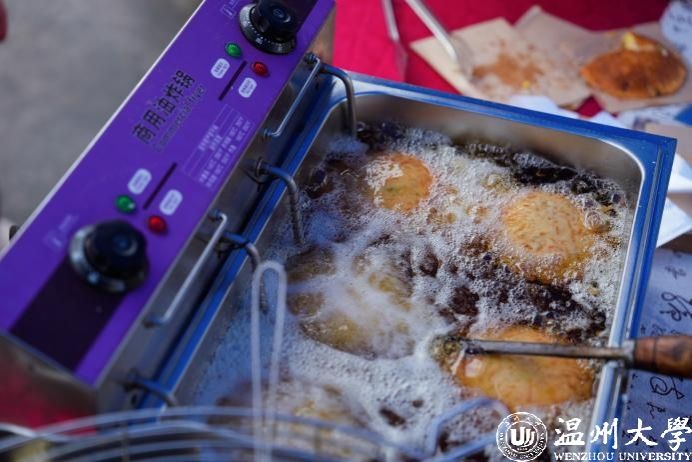 美食节上,A2青缘园餐厅准备了多种美食供师生免费享用。温州特色小吃灯盏糕、永嘉麦饼,风味小吃麻辣小龙虾、烧烤和各种水果都不间断供应,现场还制作长达5米的巨型蛋糕庆祝活动的举行,各路美食佳肴齐聚一堂,主打一个“心满意足”。