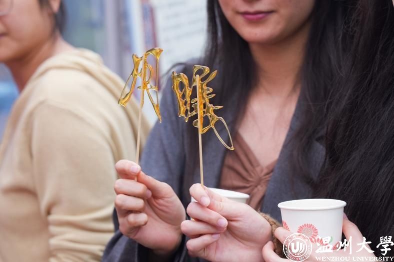 除了美食之外,本次活动特邀温州市非物质文化遗产技艺传承人带领师生看非遗、学非遗。在糖画、糖塑制作现场,师傅信手拈来,糖制的十二生肖和书法瞬间跃然台面;米塑大师现场制作的“七个小矮人”“西游记”等主题作品栩栩如生,引来师生围观;剪纸非遗传人一刀一剪,现场剪纸教学体验让师生更有融入感。