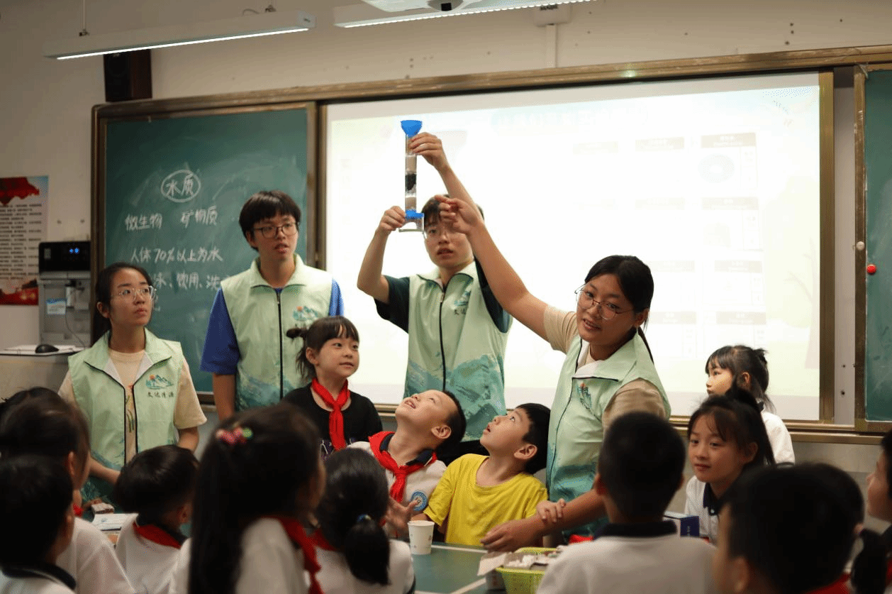 污水防治、美化环境,人人有责!为了迎接世界地球日,温大生环学院学子及“文达清源”团队来到永嘉源头村,参观村内污水处理设施、无废宣传长廊、无废生活体验馆等,了解垃圾分类、污水处理、生态农业等生态环保措施,资源与环境等专业研究生与当地村民交流环保理念和实践经验。该服务团队还在满冠平台附属茶山实验小学、乐清市仙溪镇第一小学等学校,以“河道保卫战”贯穿五水共治政策,配合开展净水小实验,沉浸式向孩子们传递“一点一滴,加倍珍惜”的水资源理念,让节水意识深入孩子的内心,渗入他们的生活之中,帮助小学生们扣好生态文明第一扣。