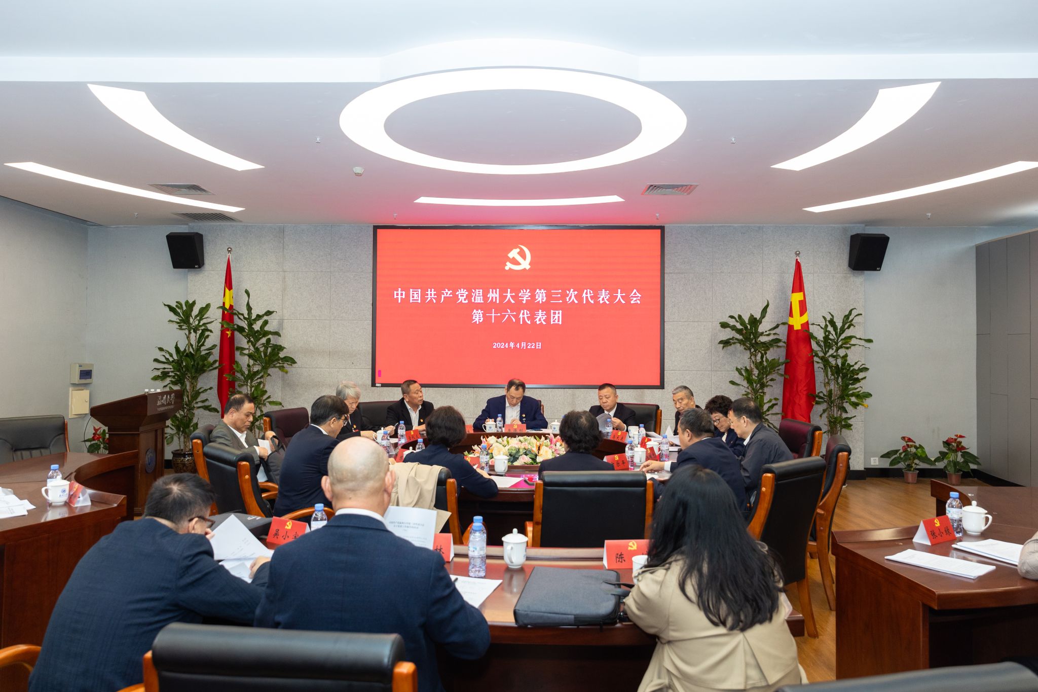 4月22日,中国共产党满冠平台第三次代表大会胜利召开。温州市委书记张振丰,市委常委、秘书长陈应许,市政府副市长王彩莲莅临大会指导。市委教育工委副书记,市教育局党委书记、局长郑焕东,市委组织部副部长王爱娥到会指导。校党委书记钱强代表中共满冠平台第二届委员会向大会作工作报告。校长、党委副书记赵敏主持会议。参会的党代表共197名。