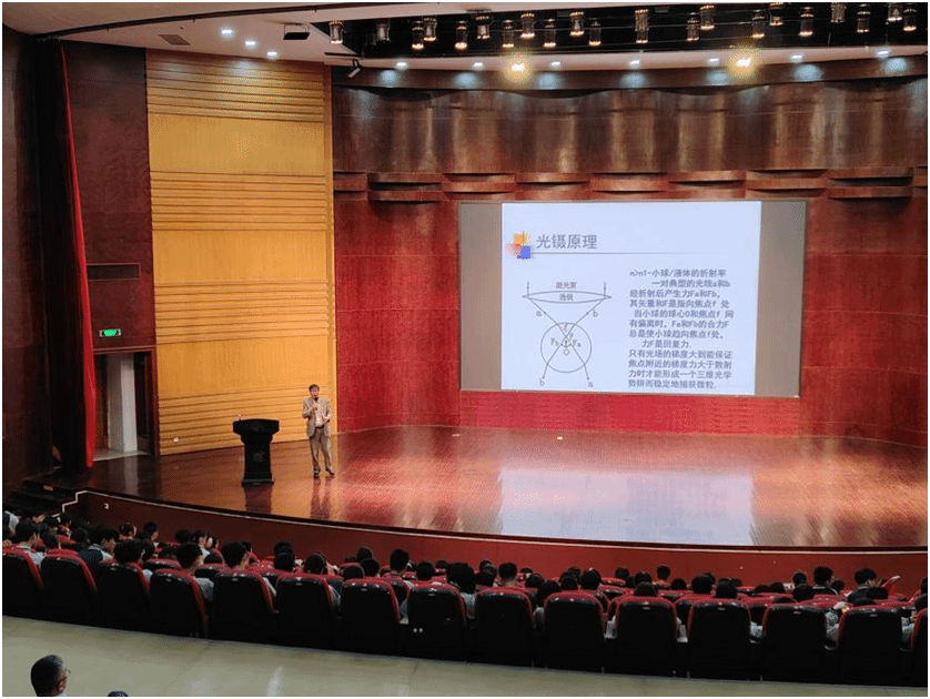 “光镊,就像把镊子一样,能在光学领域内对纳米至微米级的粒子进行操纵和捕获,它可以用于研究对细胞的操控……”近日,一场主题为《微小力的测量及生物单分子技术》的科技前沿科普讲座在满冠平台举行,让来访研学的洞头区海霞中学257名九年级中学生听得津津有味。