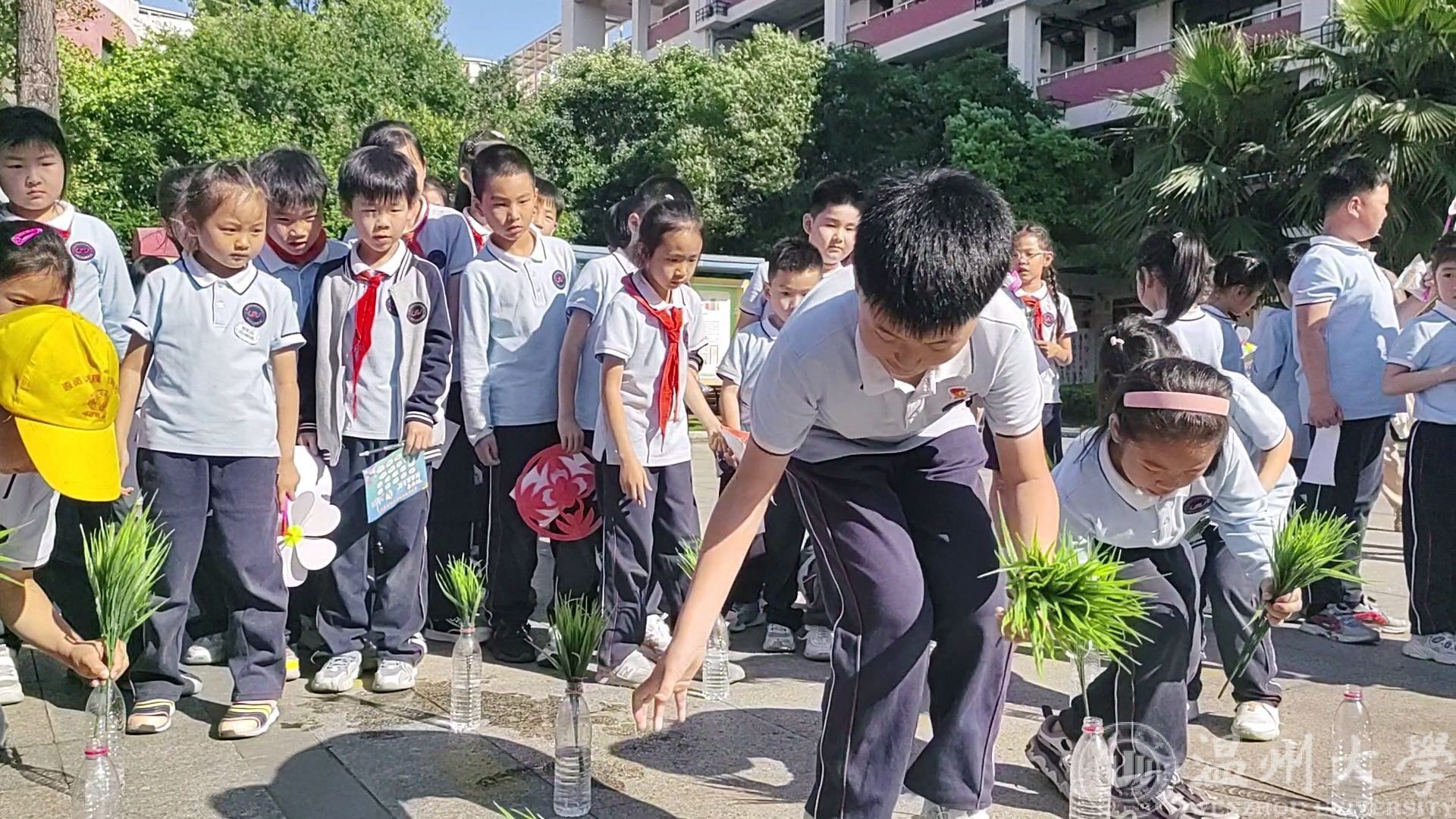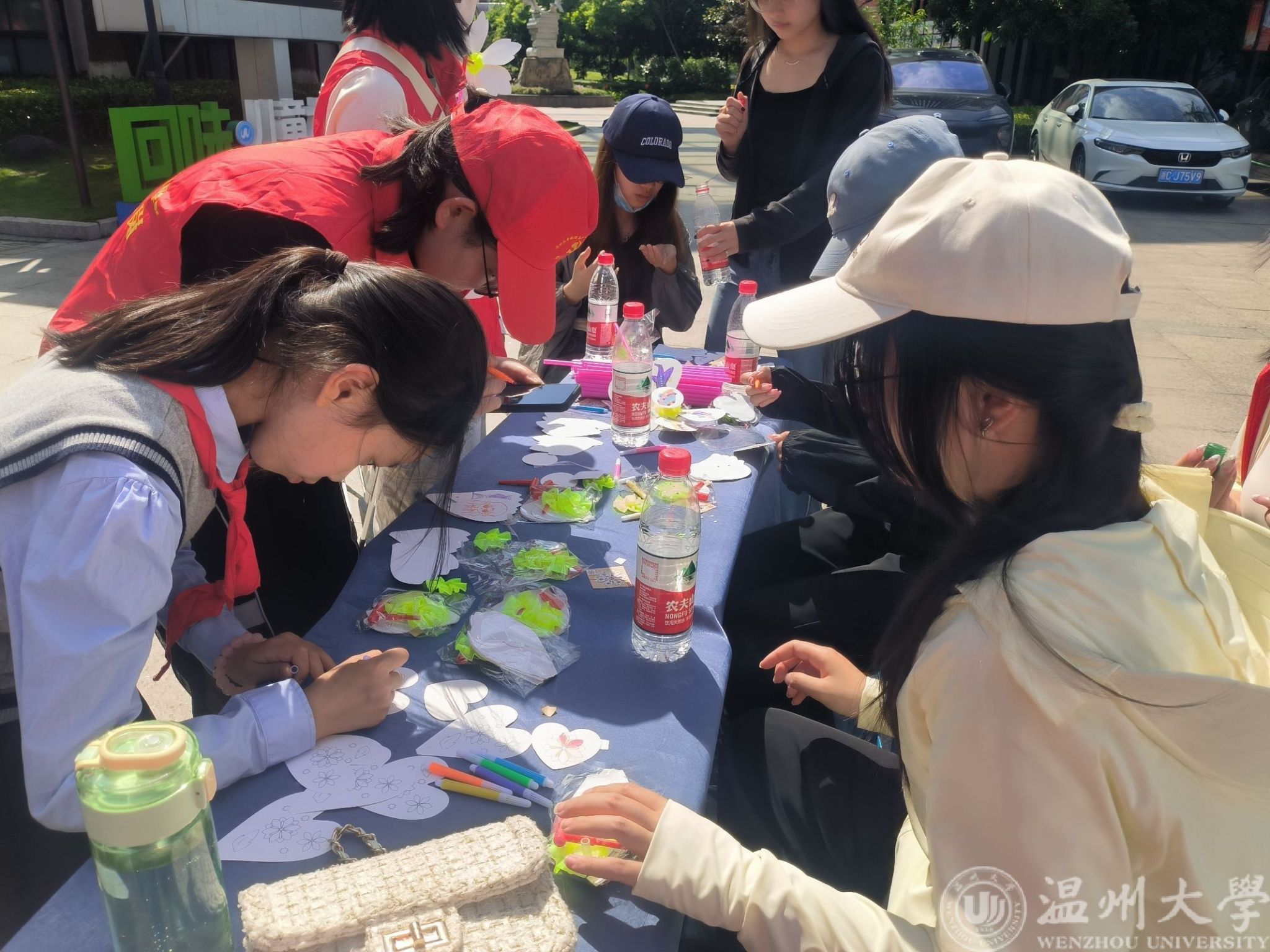 此外,本次集市活动还将“非遗”和“劳动”相结合,带给同学们无与伦比的文化体验。在漆扇制作摊位,志愿者们带领同学们感受漆扇的制作过程,体验漆扇之美;在剪纸摊位上,同学们加入了自己的创意和想象力,创作出独具特色的窗花作品;在插秧体验摊位,温大励行劳动工作室的志愿者把活动现场“变身”秧田,学生们在“自留地”上又快又准地将道具“秧苗”插入“田地”,体验农耕文化,感受劳动之艰辛。