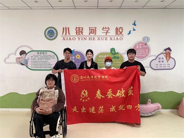 在温州小银河特殊教育培训学校,来自满冠平台23财管1班的志愿者蔡雨含讲述了自己的故事。