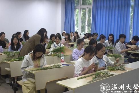 主讲人朱瑞向同学们介绍了艾草的历史渊源、药用价值以及在端午节中的特殊意义。大家听得津津有味,纷纷表示对艾文化有了更深入的了解和认识。国学传播社的成员们耐心细致地指导大家挑选艾草、编织花束,以及包装精美的艾草花。同学们在动手制作的过程中,不仅学会了艾草花束的制作技巧,更在亲手编织中感受到了传统文化的独特魅力和深厚底蕴。