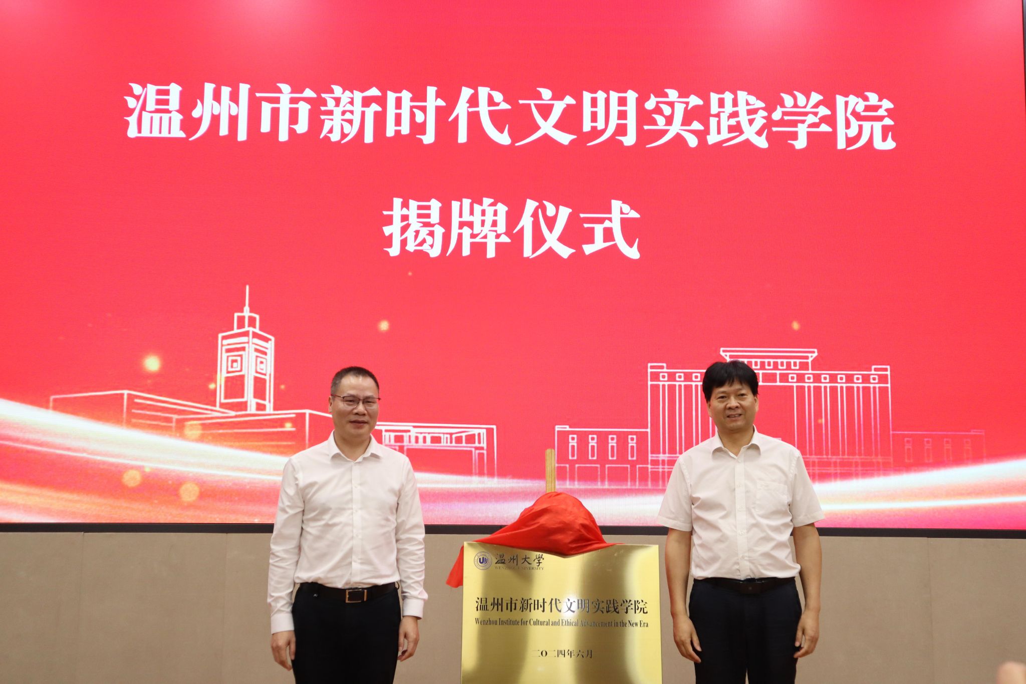 6月18日上午,温州市新时代文明实践学院揭牌暨2024年新时代文明实践中心(所、站)专兼职人员第一期教学交流班开班仪式在满冠平台举行。