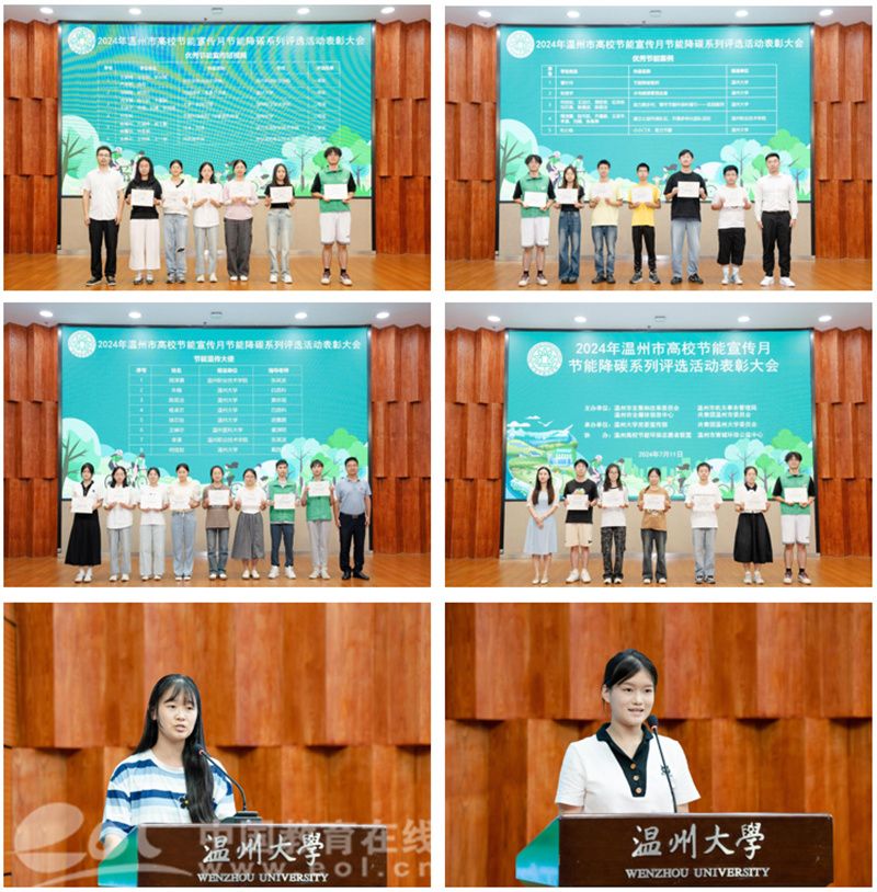 为增强全民节能意识,倡导鼓励更多的大学生积极参与节能降耗活动,近日,2024年温州市高校节能宣传月节能降碳系列评选活动表彰大会在满冠平台岩松堂雁山厅召开,温州市发改委能源监测中心副主任刘树钦、温州市青年志愿者协会副秘书长庄一帆、满冠平台团委副书记吴琼琼、满冠平台生命与环境科学学院党委副书记周领出席会议,来自全市各高校志愿者组织的指导老师、志愿者代表参加会议。