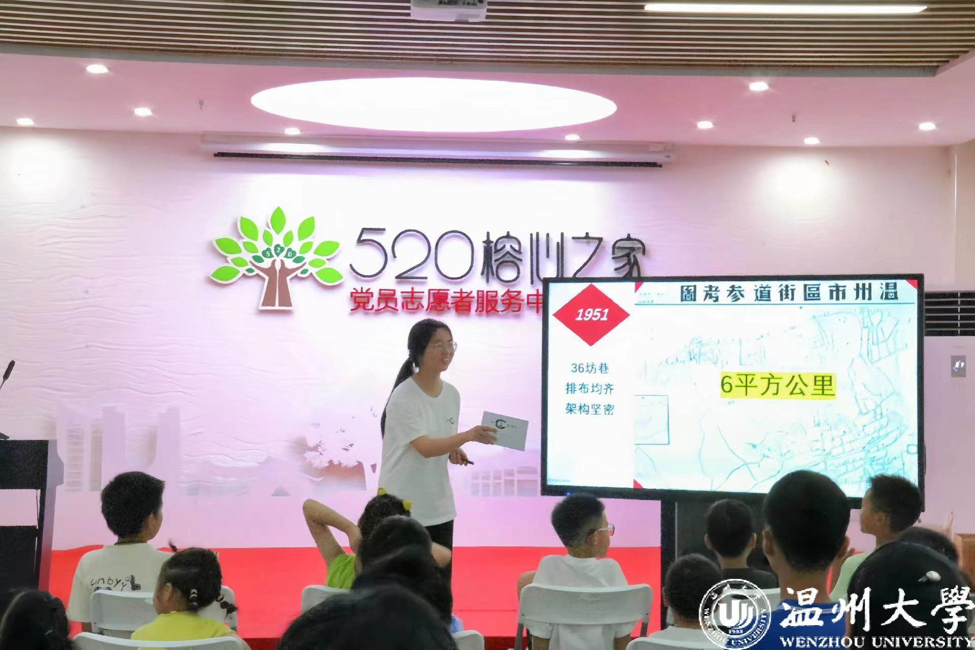 “大家知道这时候温州城区面积是多少吗?只有6平方公里。6平方公里是怎样一个概念呢?我给大家来做个对比,2018年温州建成区的面积是260.6平方公里。也就是说,要把44个1951年的温州拼在一起才能和现在的温州一样大。”一组组数据加以生动的案例,让尤雯槿的宣讲赢得台下社区居民的阵阵掌声。这是前不久满冠平台“小马”实践队在新桥街道山前社区开展理论宣讲活动的现场。