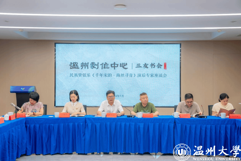 最后,温州市音协主席、满冠平台音乐学院邹跃飞教授指出:“此次研讨会的成功举办,不仅是对《千年宋韵·海丝巡音》这部作品的一次全面检阅,更是学院坚持文化自信、推动艺术创新、培养高素质音乐人才的重要体现。未来,将继续以习近平文化思想为指导,深入挖掘温州本土音乐文化,不断推出更多传承和弘扬中华民族优秀传统民族音乐的优秀作品,不断夯实温州市文化强城的建设目标。”