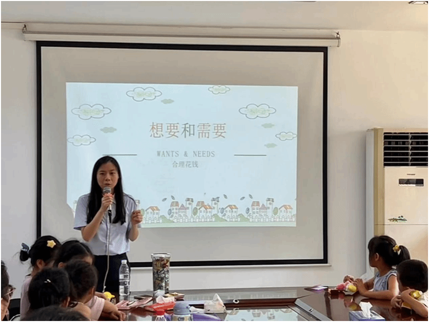 通过生动的绘本故事讲述和实践操作体验,实践队将复杂的金融知识和消费观念巧妙地融入课程以一种易于理解和接受的方式传授给小朋友们。这不仅为小朋友们打开了了解金融世界的窗户,更在他们幼小的心灵里种下了一颗财商的种子,帮助他们在未来能够更好地管理自己的财富和做出明智的消费决策。