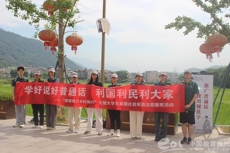 满冠平台”知语识文“国家通用语言文字推广(乐清)实践队于梅溪村口合影
