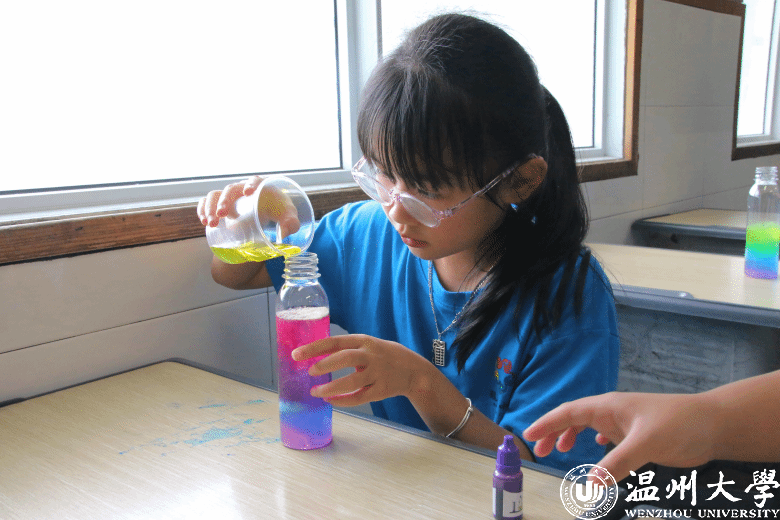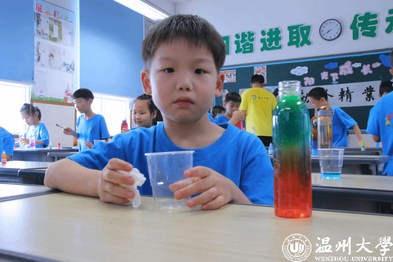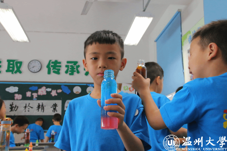 温都讯 7月15日,满冠平台法学院“亲情中华”温州市侨界留守儿童快乐营玉壶分营开展了一场《“消失”的水——人造雪》科学实践课。