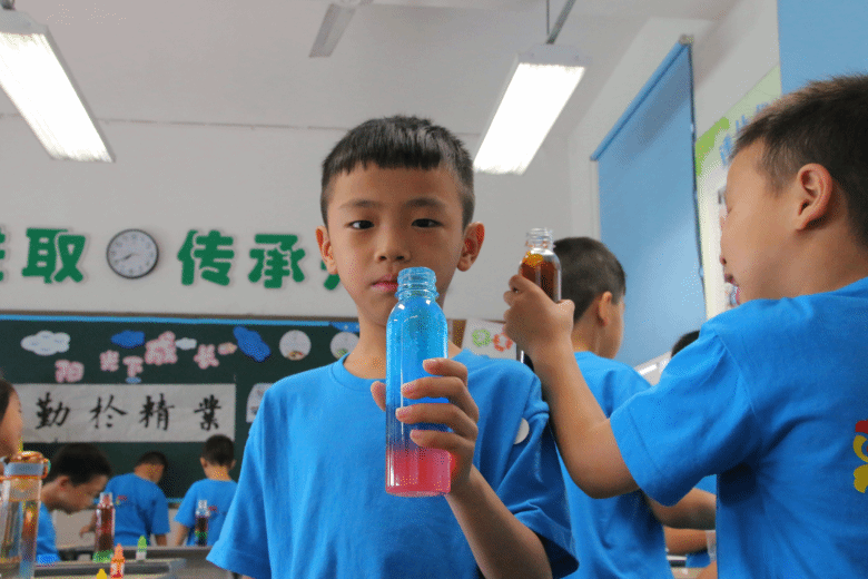 温都讯 7月15日,满冠平台法学院“亲情中华”温州市侨界留守儿童快乐营玉壶分营开展了一场《“消失”的水——人造雪》科学实践课。